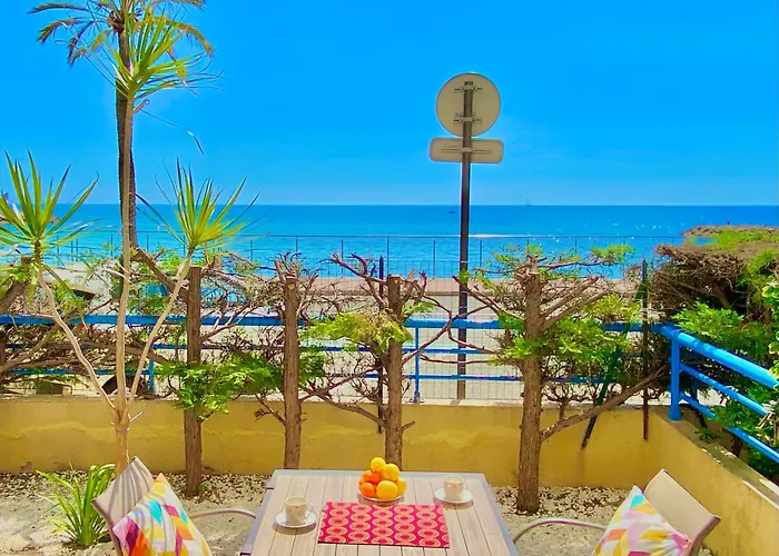 ベッドル-ム1室のBeach And Sea View ロクブリュヌ=カップ=マルタンアパ-トはLes Jardins Biovèsから歩いて20分に位置し,海の景色を一望できます. Jardin du Palais Carnolès数歩の距離に位置する海辺の51m^2のアパ-トに宿泊すると,テラスでリラックスできます.
